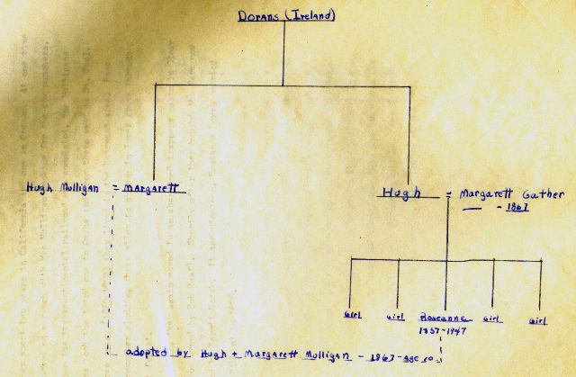 The Dorans originated in Ireland. Roseanne's father, Hugh came from Kildare and her mother, Margarett Gather from County Clair.
