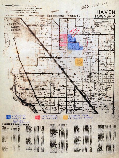 In 1871, Horatio, Drusilla, and Howard Hibbard rented two box cars and came with their belongings to St. Cloud (The railroad was completed to St. Cloud in 1866) where they bought one hundred forty acres in Haven Township (presently the Mike Hartman farm). They stayed for many years until the home burned. A married daughter and her husband came from the east and built a new home for them where they stayed until they died.