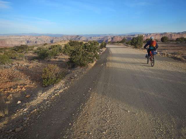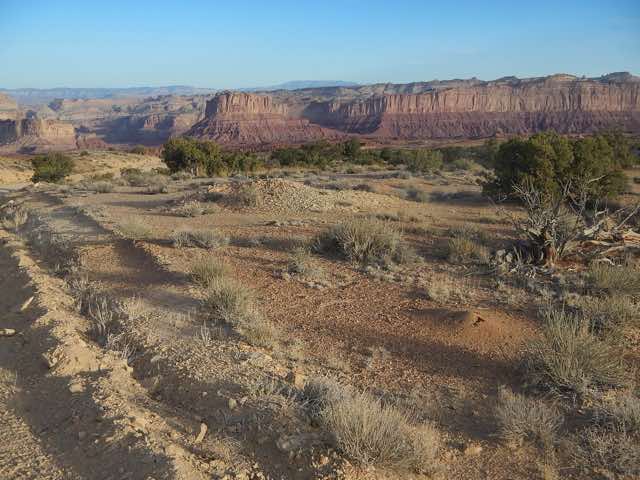 We were thankful that the roads were in better shape, though we still had hills (up and down). After a bit we got to the Muddy Creek area which we had as a destination the night before. For most of the afternoon the day before and this morning, we kept following the fresh tracks of two bikers. While we didn't know how far ahead of us they were, we were both going the same direction. There was a lot of beautiful scenery in this region, particularly in the Red's Canyon area.
